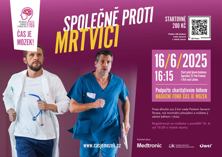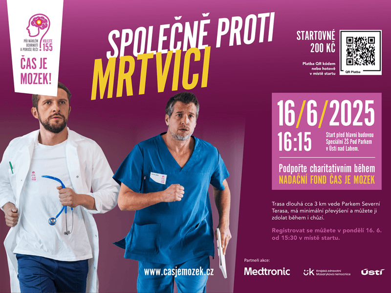 V úterý 11. června 2019 v 16:00 hodin se v Ústí nad Labem uskuteční charitativní běh Čas je mozek. Akce má za cíl upozornit na zákeřnost cévní mozkové příhody, která je spolu s infarktem nejčastější příčinou úmrtí v České republice.